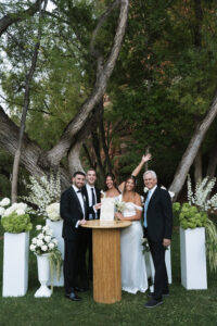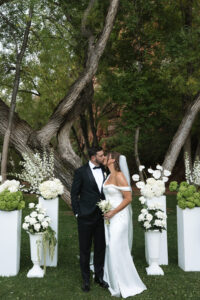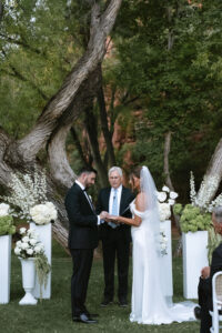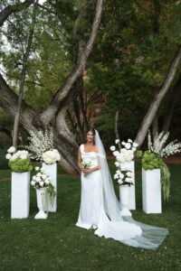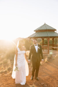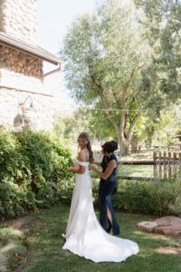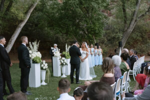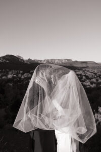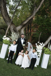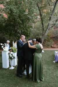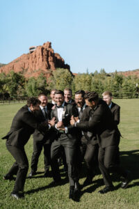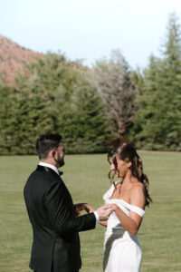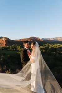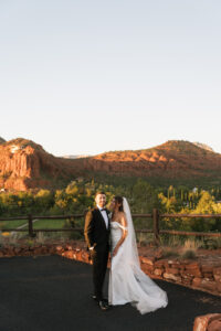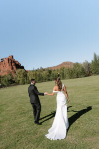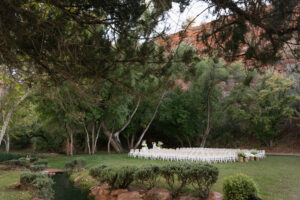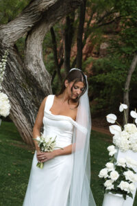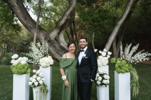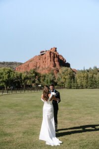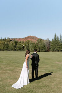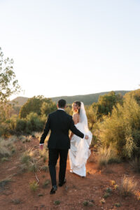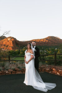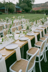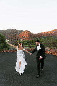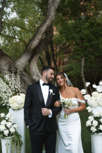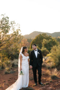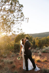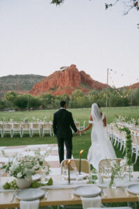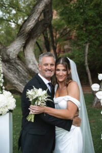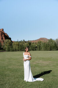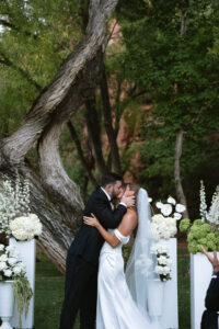 Lindsey and Ben’s wedding at Los Lagos in Sedona, Arizona was one of those days that just felt like magic. The red rocks, the trees, the soft fall light — everything came together perfectly. Lindsey looked stunning in her Anthropologie Weddings gown (this dress looked like it was designed for HER), and the whole day had this calm, elegant vibe with beautiful greens and candlelit tables that felt straight out of a garden party. Their October 18th celebration was full of laughter, happy tears, and those little in-between moments that make a wedding day so special. They ended the night with yummy pizza from Beyond Basil Pizza (10/10!!) and dancing under the stars. If you’re dreaming of a romantic Sedona wedding that feels relaxed but still elevated, this gallery will inspire you! Gorgeous rentals by Let’s Bash Events.