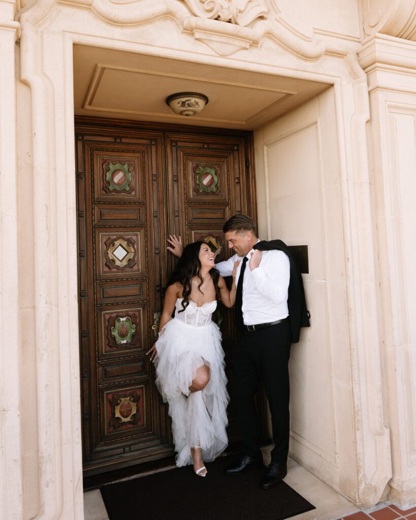 What makes this style so fun is the balance. You get those “wow” photos that look like they belong in a magazine, but you also get the in between moments. The laughter walking down the stairs. The quiet forehead touches on the balcony. The way the wind catches her dress at golden hour. It gives couples space to move, interact, and just be themselves.